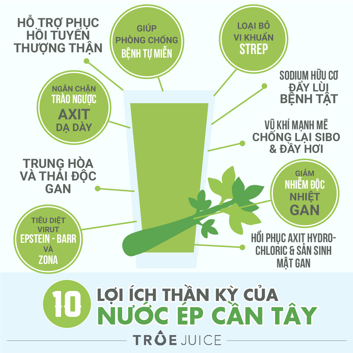 Dưới đây là 10 lợi ích của Cần tây mà True Juice muốn chia sẻ với các bạn, hi vọng qua bài viết này mọi người sẽ có thêm những thông tin bổ ích để có thể chăm sóc sức khỏe cho bản thân và gia đình của mình nhé!