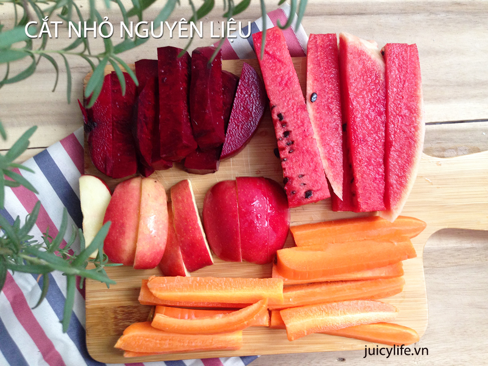 Thông thường với các loại củ cứng, bạn nên cắt dạng thanh nhỏ, các loại hoa quả nên bổ miếng nhỏ sao cho vừa họng máy, các loại rau lá cần cắt ngắn hoặc cuộn lại trước khi cho vào.