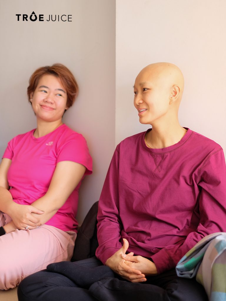 Chị Tú (áo hồng tay dài) chia sẻ trải nghiệm thải độc của bản thân.