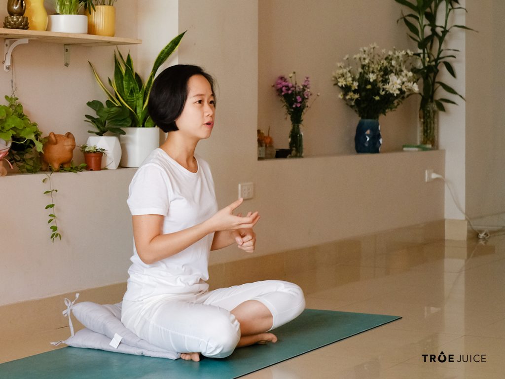 Ms. Lê Phương Hoa – HLV Yoga 200h & Founder Life School Hanoi hướng dẫn người tham gia workshop thực hành Yin.
