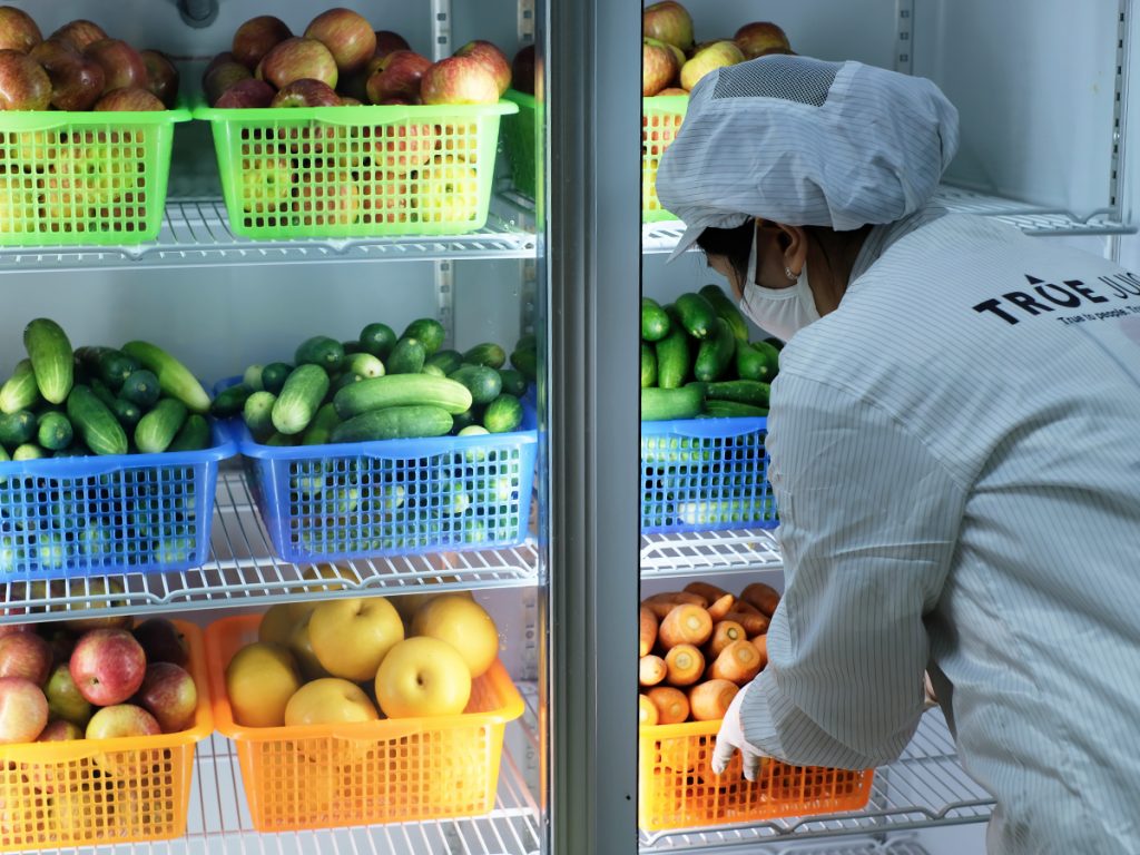 Quy trình rửa và bảo quản rau củ quả tại True Juice bao gồm 5 bước chặt chẽ: