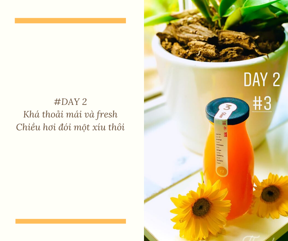 “Sau ngày đầu tiên thì sáng dậy cảm thấy khá là thoải mái và fresh nè hehee! Được dặn là 1- 2 ngày đầu sẽ khá đói và mệt nhưng trộm vía chưa thấy mệt gì cả, chỉ lúc chiều là hơi đói một xíu thui!!