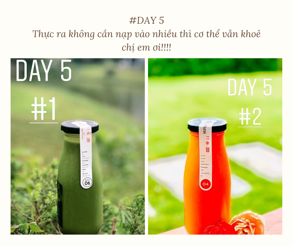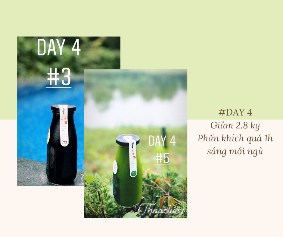 Trước khi mình detox cũng không có cân đo gì vì biết cân của mình rồi nên không muốn đối diện nữa hic! Mình cũng không thích cân hằng ngày dễ bị áp lực nên mình sẽ chỉ cần vào ngày thứ 3 và ngày thứ 7 thôi nha!!!”