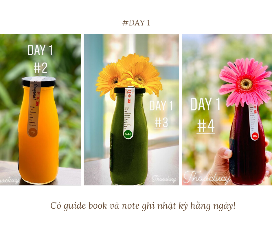 “Mình đặt liệu trình detox 7 ngày, mỗi ngày giao 6 chai được chia ra uống cách nhau 2 tiếng và không ăn gì cả nhé!