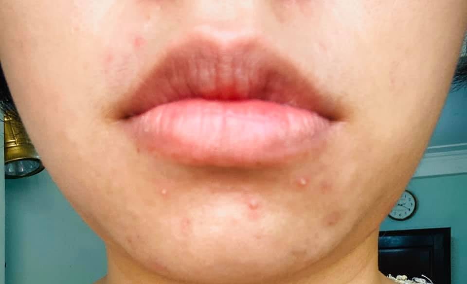 DA: Mụn li ti mọc lên khắp vùng cằm trán nhưng sờ lại bớt sần sùi hơn