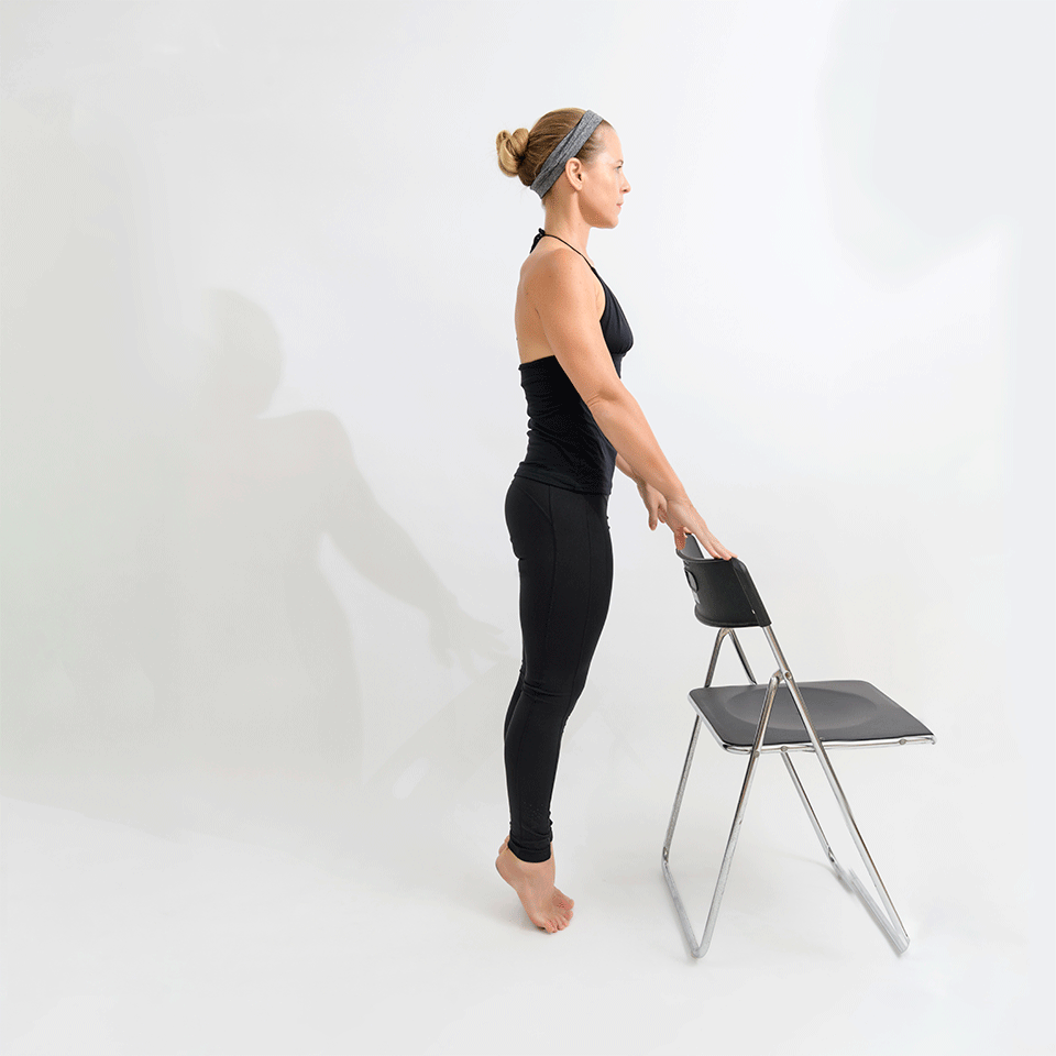 Đứng thẳng với hai bàn chân ở một vị trí nhất định và nâng gót chân lên cao hết mức có thể.